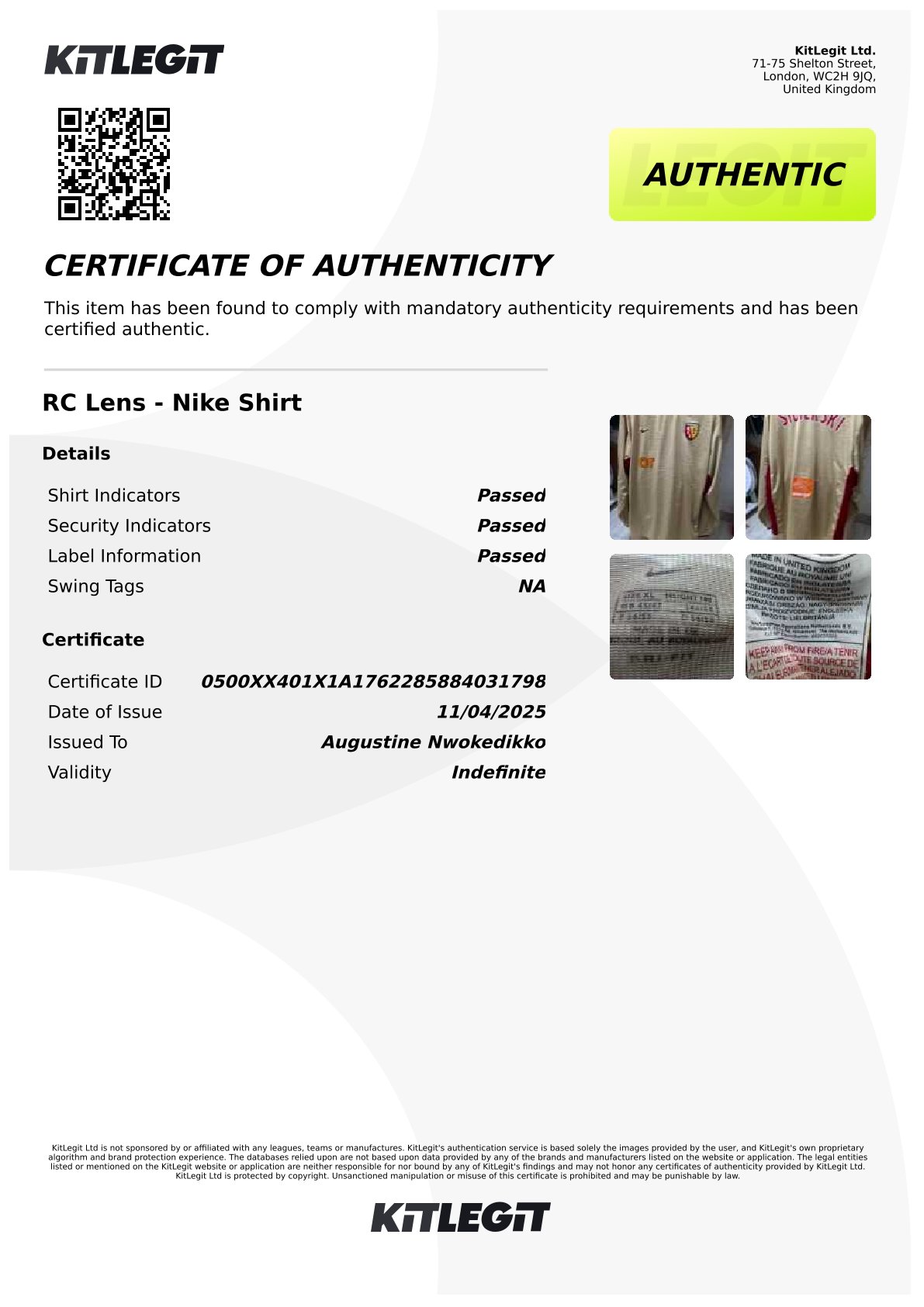 RC Lens 2002- 03 home jersey. Nike
